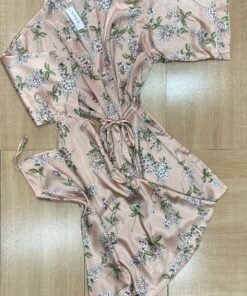 ensemble 4 pièce en satin (nuisette+peignoir+bustier+pantalon)