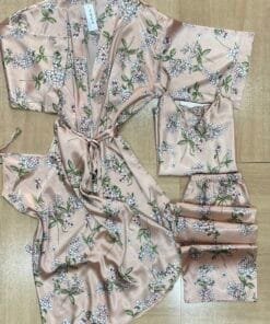 ensemble 4 pièce en satin (nuisette+peignoir+bustier+pantalon)